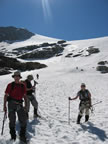 On remonte sur le glacier une pente raide en tirant à droite, on atteint