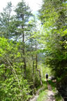 Nous retrouvons la voiture et partons pour Icogne afin de faire une partie du Grand Bisse de Lens. Ce bisse est normalement en eau, il faut attendre que la neige apportée par les avalanches aie fondue ... ce qui n'était pas encore le cas. Le chemin est principalement dans la forêt et très agréable, parfois étroit. Nous retrouvons des passerelles vers la fin de l'itinéraire. Le bisse est vraiment accroché à la falaise, vertige interdit ! Nous rejoingnons la source du bisse après 2 petites heures de marche. Alain s'assoit sur le chemin de fourmis rouges, il s'en souviendra longtemps ! Le chemin par lequel nous aurions dû arriver à ce point depuis le bisse du Rhô nous nargue ... et nous retournons sur nos pas pour rejoindre notre véhicule.