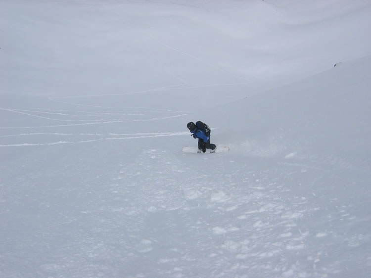 Maud à la sortie du couloir. La pente devient plus large.